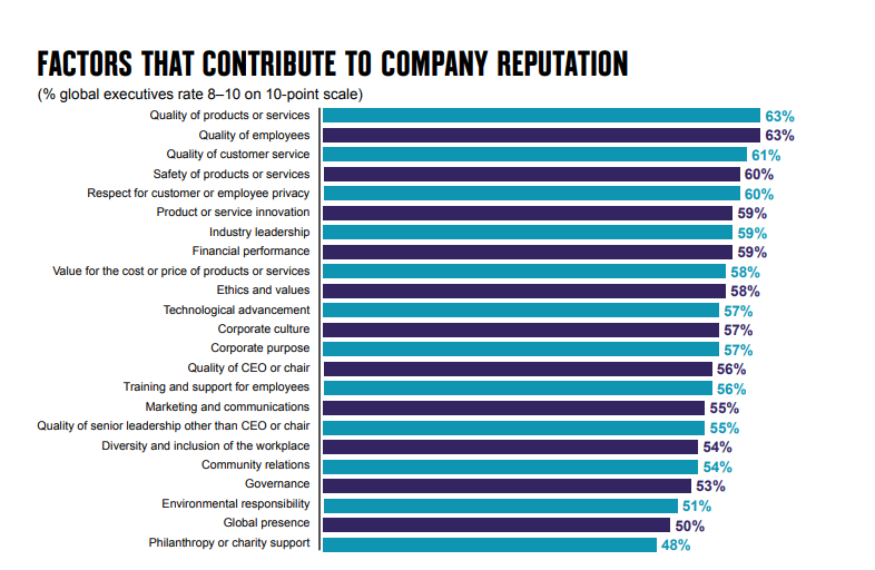 La reputazione aziendale alla base del brand management è un bene inestimabile, che ha un impatto notevole sui profitti e sul market value dell’azienda stessa. In particolare, secondo una recente indagine di Weber Shandwick dal titolo “The State of Corporate Reputation: Everything Matters Now”, la company reputation impatta sul valore di mercato dell’azienda con un insieme di fattori, tutti di primaria importanza.
